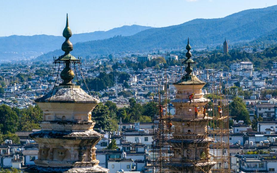 激昂的锣鼓声中,引狮人绣球一挥,两只“狮子”腾跃而起,在方桌搭建的10米高台上辗转腾挪、踏鼓起舞。在重庆彭水苗族土家族自治县蚩尤九黎城景区,每当有国家级非物质文化遗产代表性项目高台狮舞表演,都会引来游客驻足观看、连连喝彩。