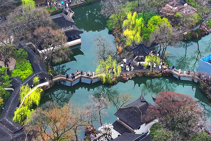 江苏苏州拙政园在绵绵春雨中诗意盎然,粉墙黛瓦倒映碧波,游人撑伞漫步亭台回廊,在烟雨朦胧间品味春日江南的温婉韵味。