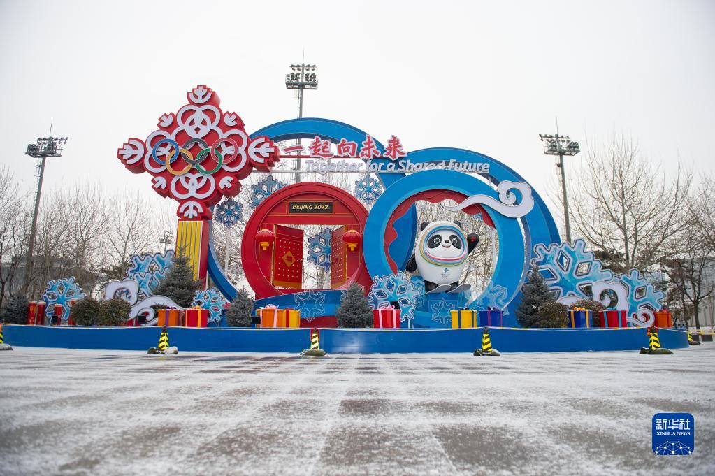 这是1月20日拍摄的北京奥林匹克公园内的一处冬奥主题景观。新华社记者 陈钟昊 摄