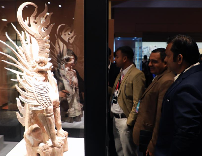 一件是宋代的荷花托盏,像一朵盛开的莲花,翻过来又像是一个莲蓬,是繁昌窑的代表之作。而另一件国家一级文物凤首壶,造型非常优美,据介绍是模仿唐代金银器的器形来制作的,颇有几分波斯风情。