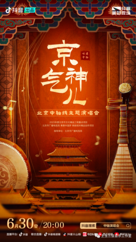 自2021年起,北京卫视文化音乐节目《最美中轴线》通过音乐竞演真人秀综艺的形式,借音乐之声助力北京中轴线申遗。抖音推出的《京气神儿》《听建·中轴》北京中轴线主题直播演唱会,以京韵声音,串联唤起北京文化记忆链接,诠释北京城、北京人的人文气质和文化历史。系列动画短视频《东方燕燕探中轴》将正阳门上的雨燕和城楼屋脊上的垂脊兽进行人格化处理,讲述中轴线的建筑景观或文化故事。