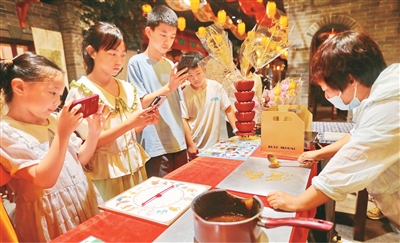 孩子们在山海关中国长城博物馆体验糖画制作。曹建雄摄(人民图片)