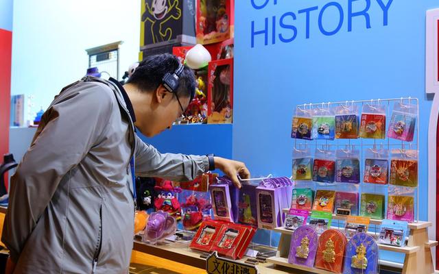 记者在现场看到,展区集齐了国家博物馆、明十三陵博物馆及定陵博物馆三大文博机构开发的十余款凤冠主题文创产品。今年3月,国家博物馆现象级文创——凤冠冰箱贴累计销量突破100万件,带动凤冠IP全系列文创产品销售额跨越亿元,创下国博近二十年来单品及系列文创的销售纪录。该系列产品的原型为明孝端皇后九龙九凤冠,展现了明代皇家的美学风范。从引爆市场的国博凤冠冰箱贴,到象征最高规格的十二龙九凤冠衍生品,展区荟萃了凤冠文创领域的代表作品,堪称凤冠文创最全面的一次集中亮相。