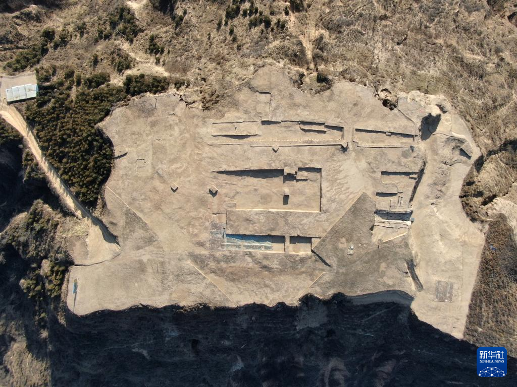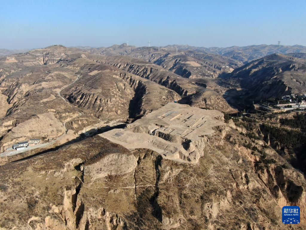 12月9日拍摄的陕西清涧寨沟遗址寨塬盖夯土建筑群(无人机照片)。