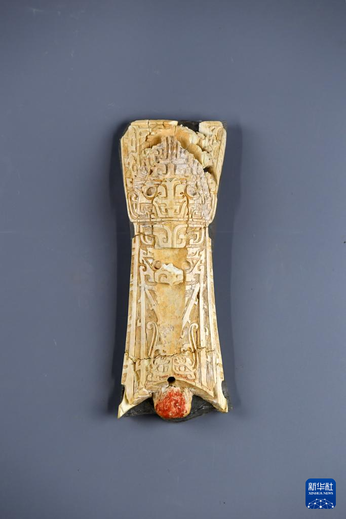 12月8日拍摄的陕西清涧瓦窑沟墓地出土雕花象牙器。