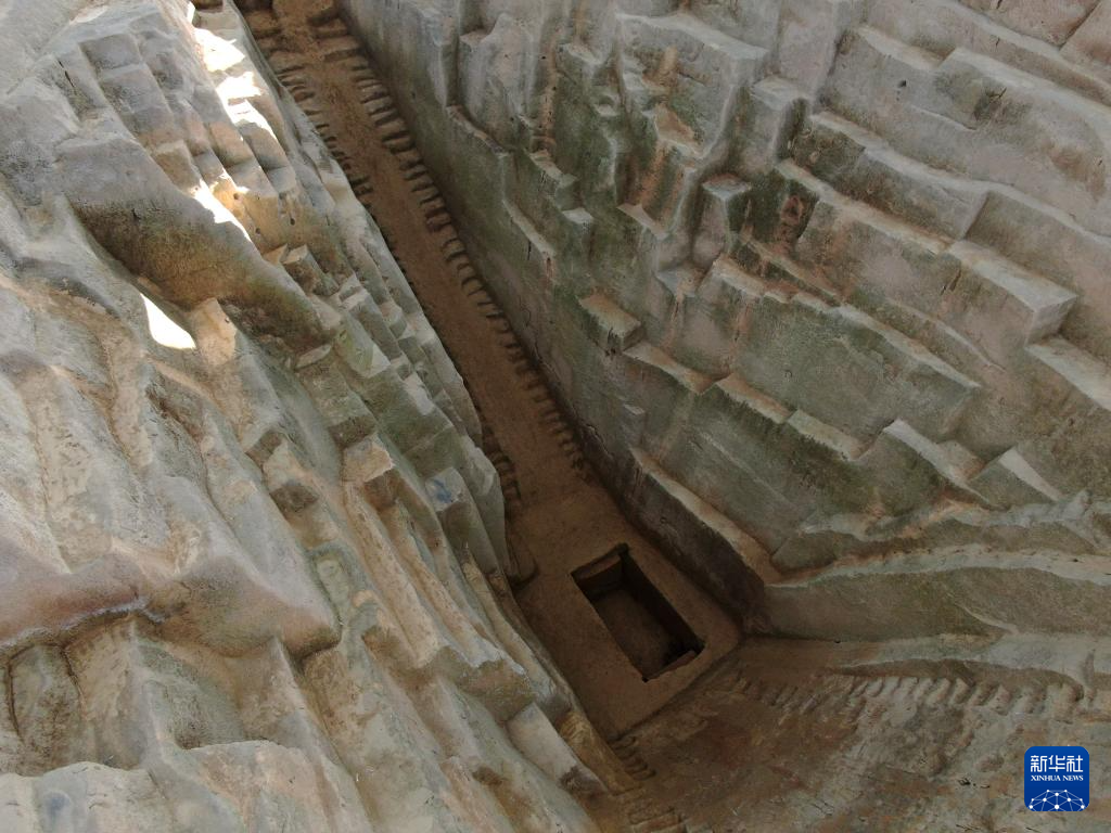 12月8日拍摄的陕西清涧瓦窑沟墓地M8号墓(无人机照片)。