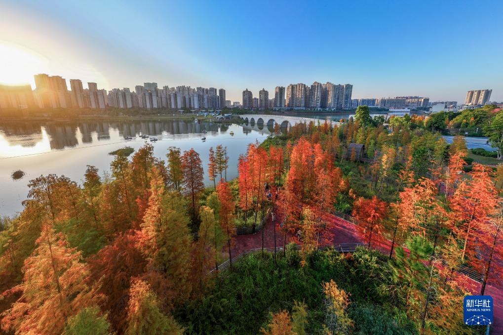 12月16日拍摄的江苏省昆山市开发区景枫公园景观(无人机照片)。