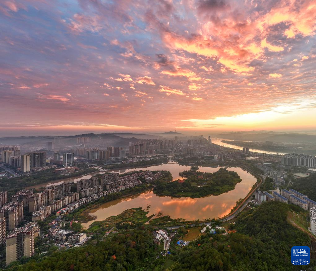 12月17日清晨拍摄的广西梧州景色(无人机照片)。