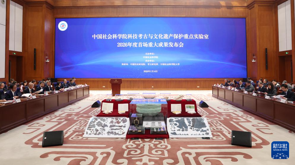 这是1月14日拍摄的中国社会科学院科技考古与文化遗产保护重点实验室2026年度首场重大成果发布会现场。