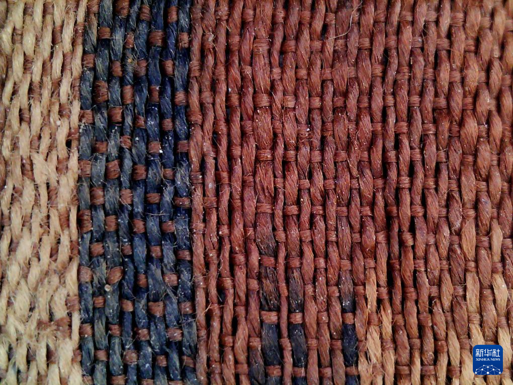 青海都兰热水墓群2018血渭一号墓出土的扎经染色织物细节图(资料照片)。
