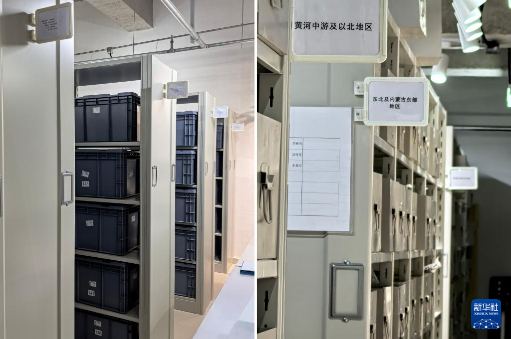 拼版照片:左图为中国现生动物标本库内景;右图为中国古代动物标本库内景(资料照片)。