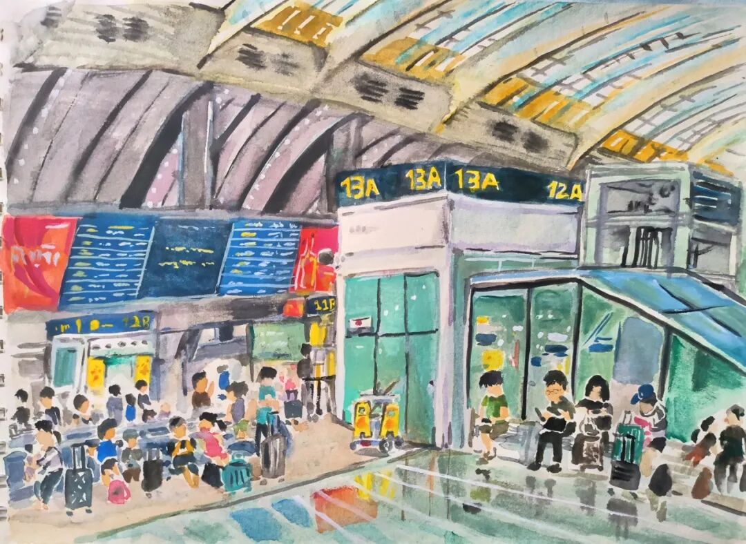 刘奕宁《等待启程——候车大厅一角》